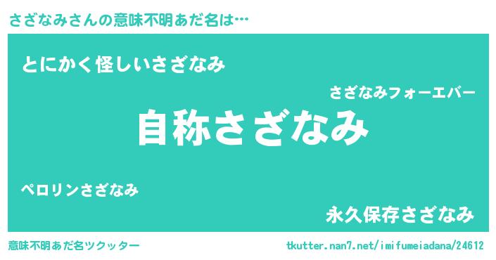 | 男性向けラノベタイトル風あだ名 | 『Re:さざなみから始める異世界生活』 |