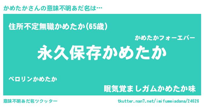 | ヘコむあだ名 | 『かめたか(遠い目)』『なまこ酢』 |