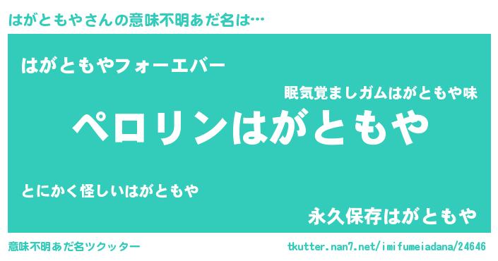 | ファンタジー風あだ名 | 『ハガフェル』『エターナルハガトモヤー』 |
