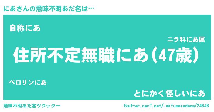 | 男性向けラノベタイトル風あだ名 | 『この素晴らしい世界ににあを!』 |