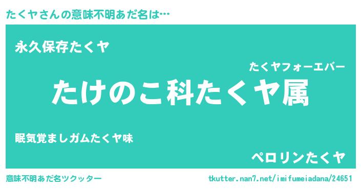 | 男性向けラノベタイトル風あだ名 | 『転生したらたくヤだった件』 |