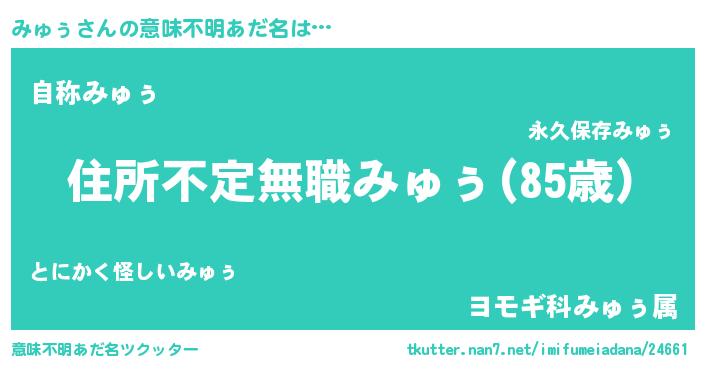 | ヘコむあだ名 | 『みゅぅ(震え声)』『みゅを』 |