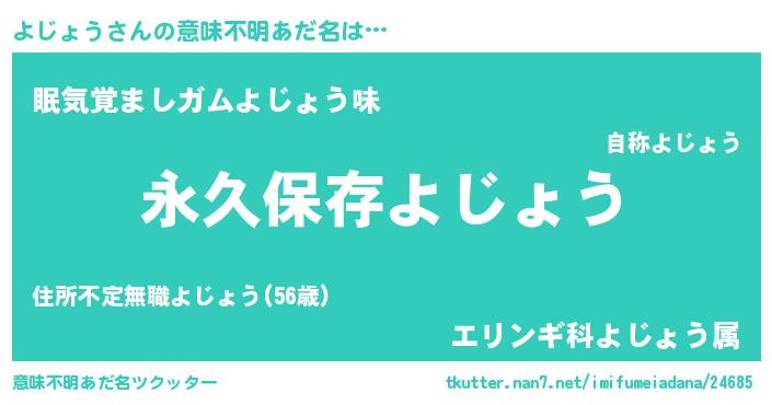 | 男性向けラノベタイトル風あだ名 | 『よじょうという概念が存在しない退屈な世界 』 |