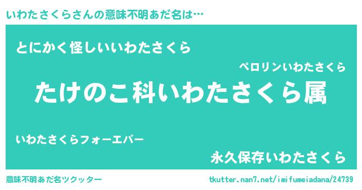 | ポケモン風あだ名 | 『イワキング』『ヒイワタサクラ』 |