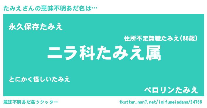 | ヘコむあだ名 | 『たみえ(小並感)』『たみっふぃ~』 |