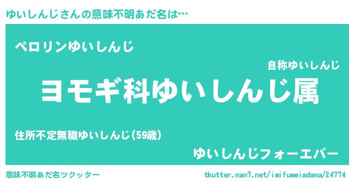 | 男性向けラノベタイトル風あだ名 | 『ゆいしんじ~年齢イコール彼女いない歴の魔法使い~』 |