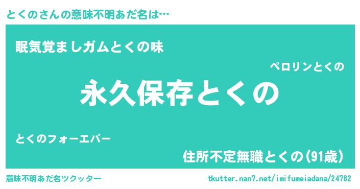 | 女子向けラノベタイトル風あだ名 | 『とくのの契約王妃』『死神とくのの再婚』 |