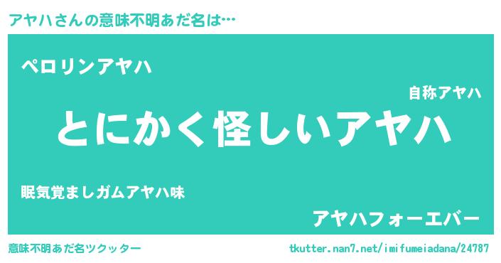 | ヒーロー風カッコイイあだ名 | 『幻影騎士アヤ』『スーパーアヤハ』 |