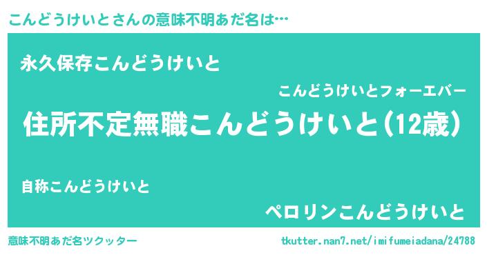 | ヘコむあだ名 | 『こんどうけいと(笑)』『こんにー』 |