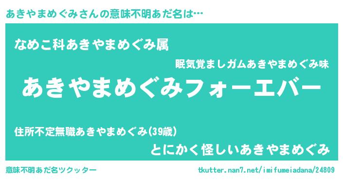 | ファンタジー風あだ名 | 『エターナルアキヤマメグミー』 |