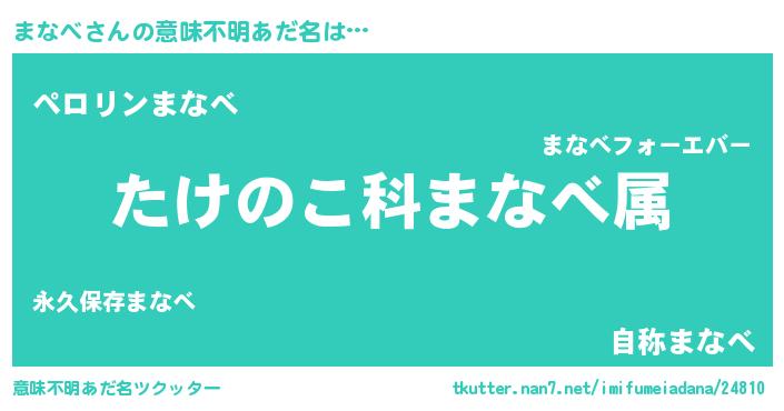 | 男性向けラノベタイトル風あだ名 | 『転生したらまなべだった件』 |