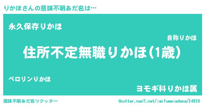 | ヘコむあだ名 | 『りかほ(小並感)』『りかにー』 |