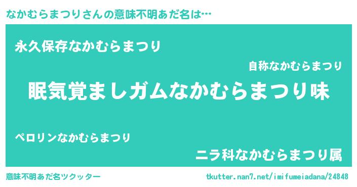 | 男性向けラノベタイトル風あだ名 | 『うちのなかむらまつりが世界を掌握している!』 |
