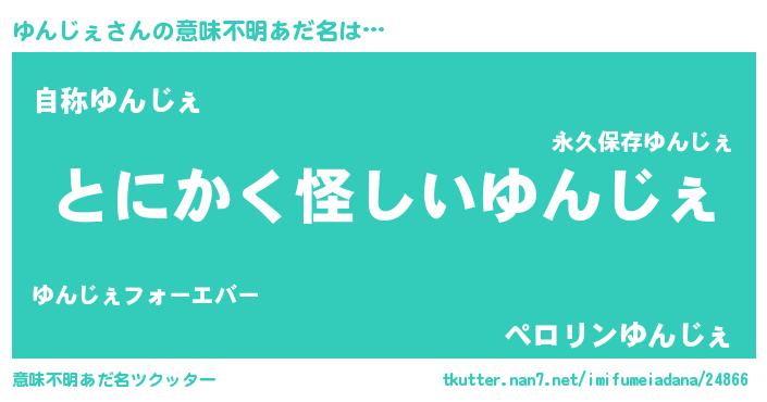 | 男性向けラノベタイトル風あだ名 | 『ダンジョンにゆんじぇを求めるのは間違っているだろうか』 |