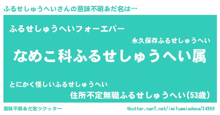 | 男性向けラノベタイトル風あだ名 | 『転生したらふるせしゅうへいだった件』 |