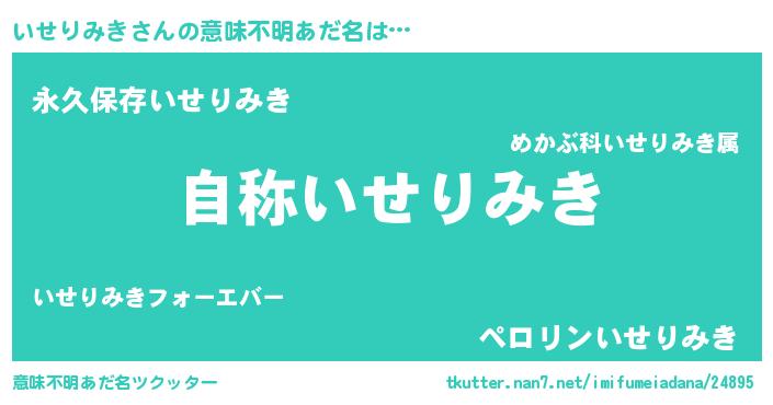 | ヘコむあだ名 | 『いせりみき(小並感)』『いせにゅー』 |