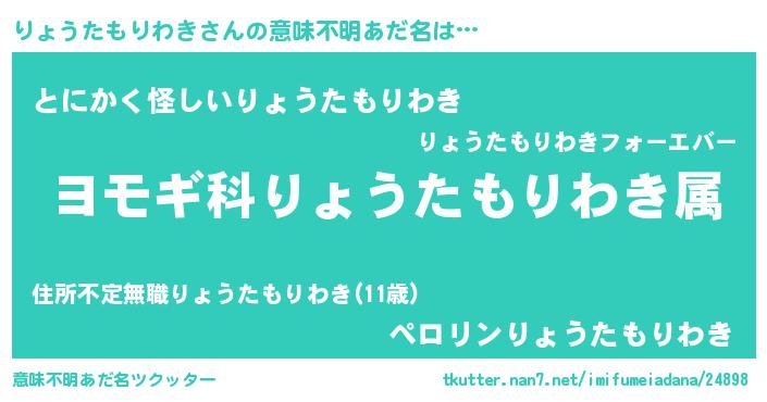| 男性向けラノベタイトル風あだ名 | 『りょうたもりわき~年齢イコール彼女いない歴の魔法使い~』 |
