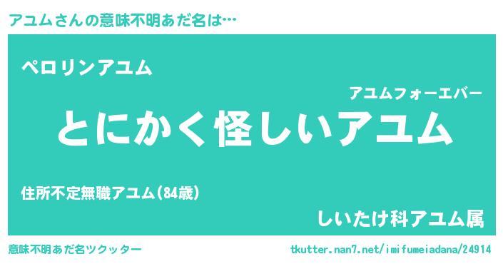 | 欧米人風あだ名 | 『アンジェラ・アユム』『ウサインアユム』 |