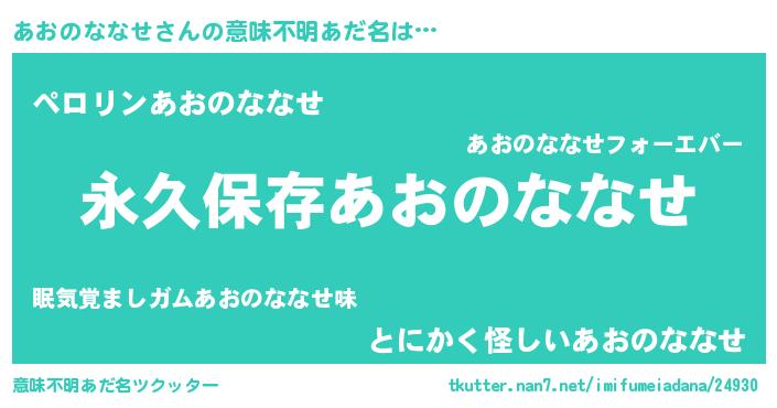 | ヘコむあだ名 | 『あおのななせ(遠い目)』『あおにゅー』 |