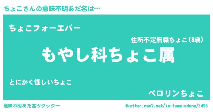 | 胡散臭い通販商品みたいなあだ名 | 『世界が平和になる高級そうな壺…その名も「ちょこ」』 |