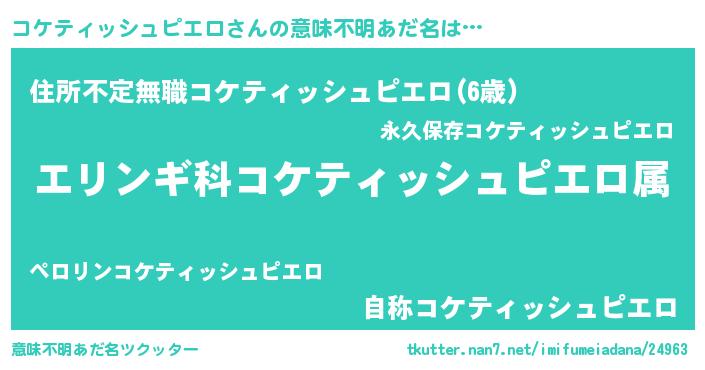 | 男性向けラノベタイトル風あだ名 | 『コケティッシュピエロスレイヤー』 |