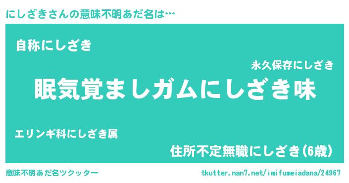 | 男性向けラノベタイトル風あだ名 | 『おまえをオタクにしてやるから、俺をにしざきにしてくれ! 』 |