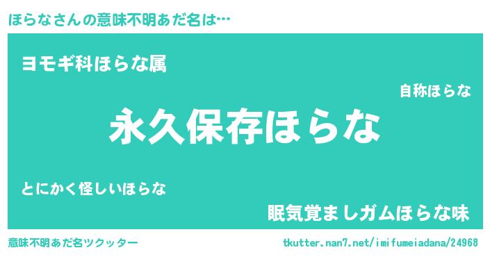 | ヒーロー風カッコイイあだ名 | 『ネオホラナ』『天空の使者ほらな』 |