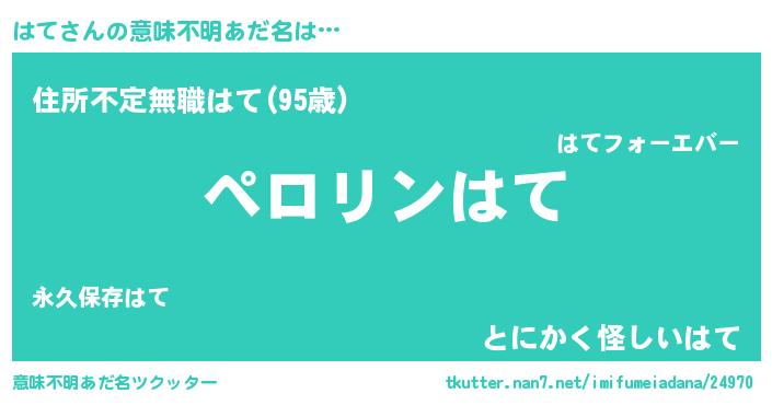 | ポケモン風あだ名 | 『ハテチュウ』『ハーテイ』『ヒハテ』 |