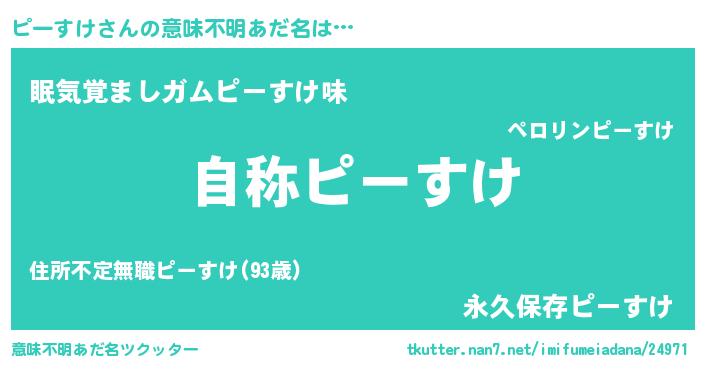 | 男性向けラノベタイトル風あだ名 | 『Re:ピーすけから始める異世界生活』 |