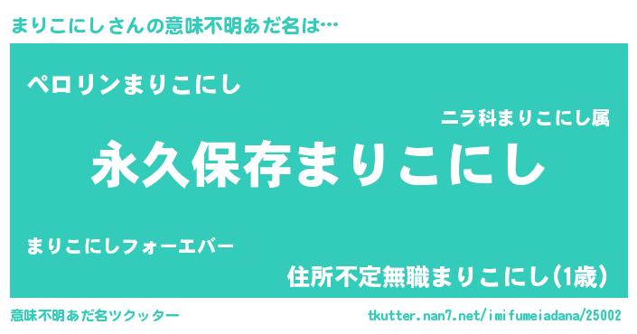 | 胡散臭い通販商品みたいなあだ名 | 『絶対に幸福をもたらす水素水…その名も「まりこにし」』 |
