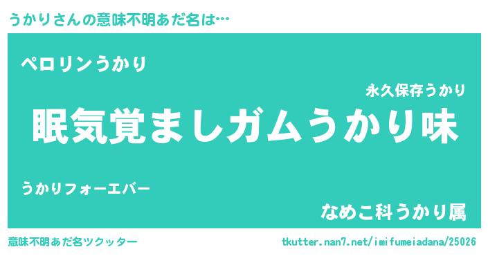| ヒーロー風カッコイイあだ名 | 『友情の使者うかり』『スーパーウカリ』 |