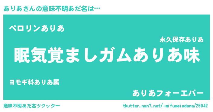 | ヒーロー風カッコイイあだ名 | 『正義の使者ありあ』『スーパーアリア』 |