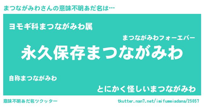 | ヘコむあだ名 | 『まつながみわ(遠い目)』『まつっちょ』 |