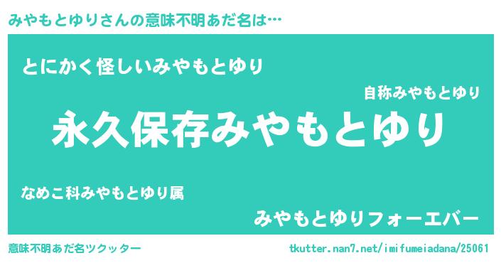 | 男性向けラノベタイトル風あだ名 | 『みやもとゆりという概念が存在しない退屈な世界 』 |