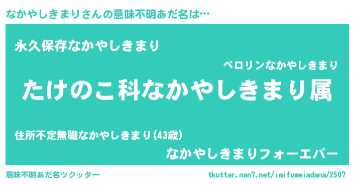 | 胡散臭い通販商品みたいなあだ名 | 『来世でも幸せになれる健康食品…その名も「なかやしきまり」』 |