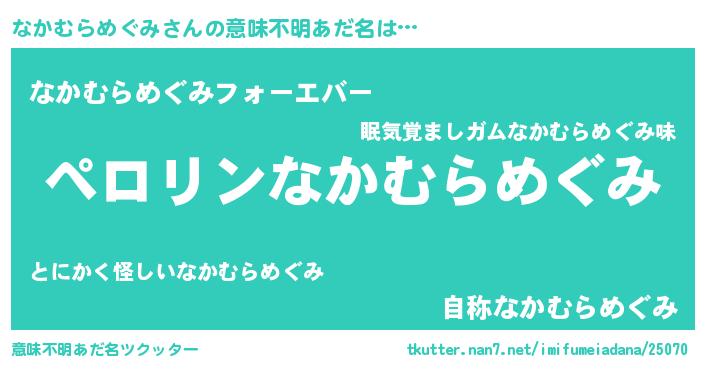 | ヒーロー風カッコイイあだ名 | 『スーパーナカムラメグミ』 |