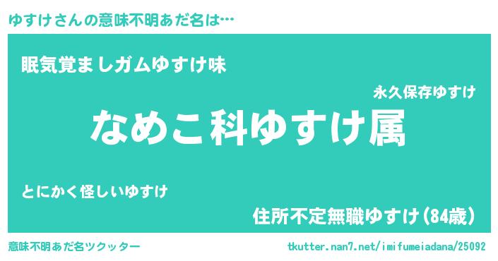 | 男性向けラノベタイトル風あだ名 | 『転生したらゆすけだった件』 |