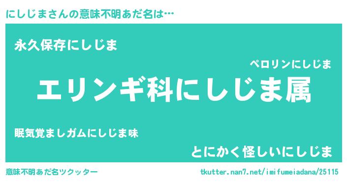 | ヘコむあだ名 | 『にしじま(震え声)』『にしっ子』 |