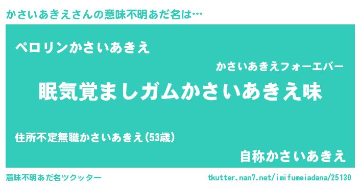 | 女子向けラノベタイトル風あだ名 | 『かさいあきえ恋絵巻』 |