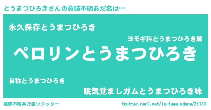| 胡散臭い通販商品みたいなあだ名 | 『必ず成功するブレスレット…その名も「とうまつひろき」』 |