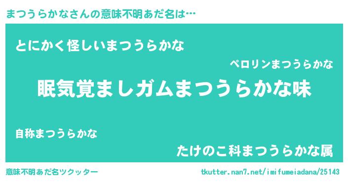 | 男性向けラノベタイトル風あだ名 | 『ノーゲーム・ノーマツウラカナ』 |