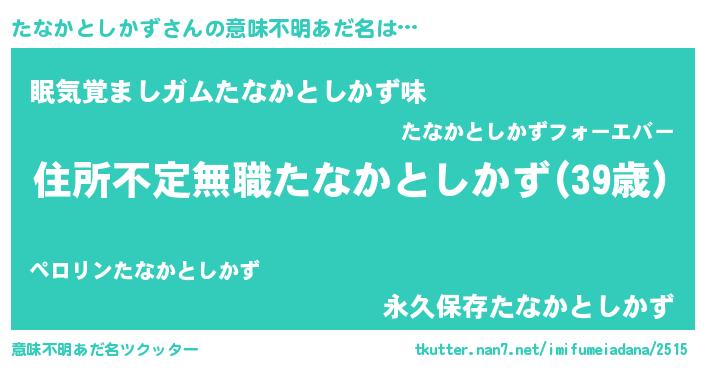 | 男性向けラノベタイトル風あだ名 | 『この素晴らしい世界にたなかとしかずを!』 |