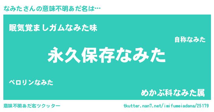 | 男性向けラノベタイトル風あだ名 | 『なみたという概念が存在しない退屈な世界 』 |