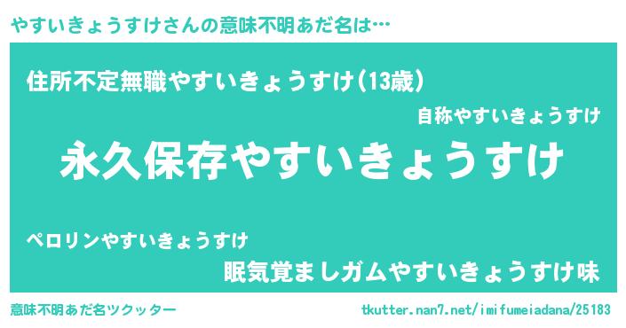 | 男性向けラノベタイトル風あだ名 | 『はたらくやすいきょうすけさま!』 |