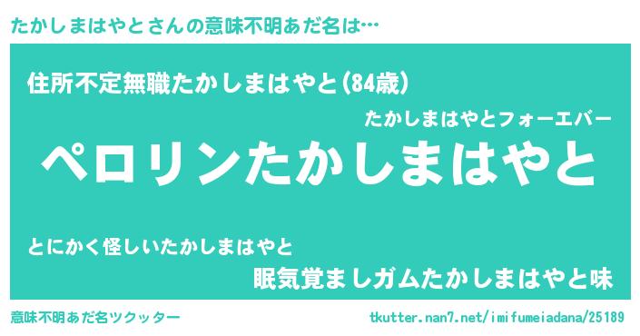| 伝説のあだ名 | 『封印されしスナイパーたかしまはやと』 |