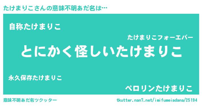 | ヒーロー風カッコイイあだ名 | 『銀牙騎士タケ』『超時空戦士タケマリコ』 |