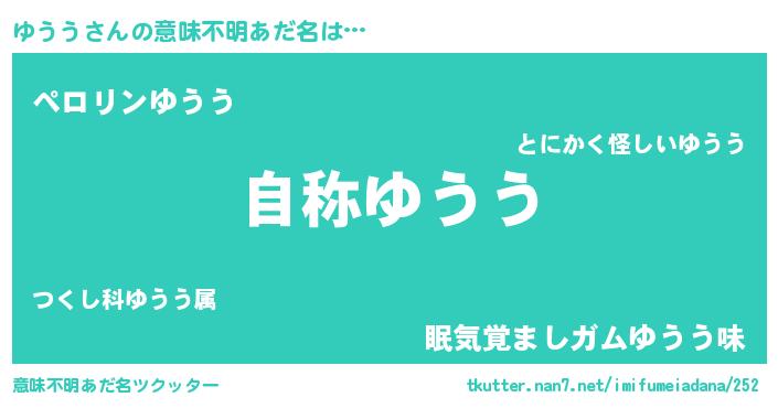| ヘコむあだ名 | 『ゆうにー』『ゆうっぺ』『酢こんぶ』 |