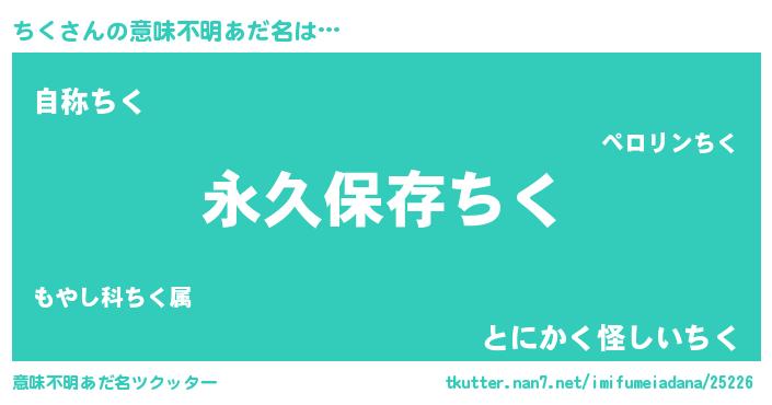 | 男性向けラノベタイトル風あだ名 | 『ちくという概念が存在しない退屈な世界 』 |