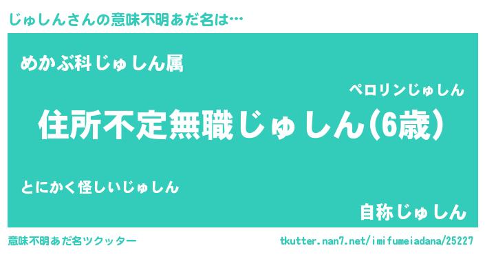 | 料理風あだ名 | 『じゅしんのカルパッチョ風』 |