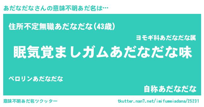 | 男性向けラノベタイトル風あだ名 | 『あだなだなに滅ぼされるだけの簡単なお仕事です』 |
